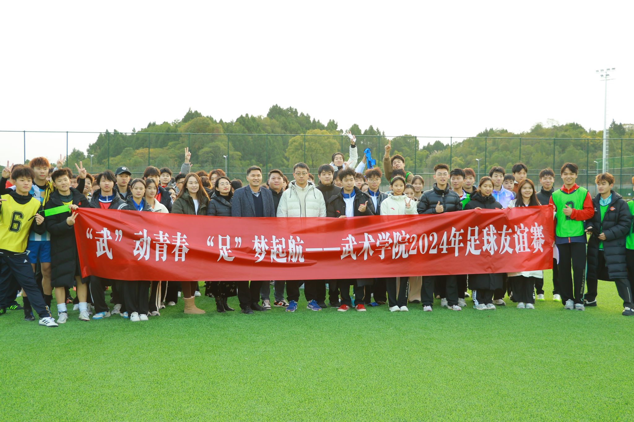 11月25日,武术学院迎来了2024年足球友谊赛的盛大开幕式。本次比赛以“‘武’动青春,‘足’梦起航”为主题,旨在丰富同学们的课余生活,增强团队合作精神和集体荣誉感。比赛吸引了同学们的积极参与,现场气氛热烈,充满了青春与活力。出席本次开幕式的有武术学院党委书记罗兴山、本科生管理办公室主任李阳、团总支书记刘洪源、各班班主任,以及各参赛队伍的代表和热情洋溢的观众。开幕式由刘洪源老师主持。