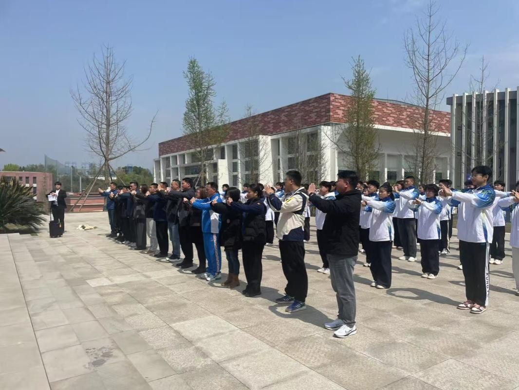 最后,全体师生齐声宣誓院训:“行健不息、积健为雄,厚德尚武、追求卓越。”誓言铿锵有力,响彻怀贤广场。同时,大家并行抱拳礼,以武者的独特方式表达对郑怀贤先生的敬仰和对武术事业的坚定信念。
