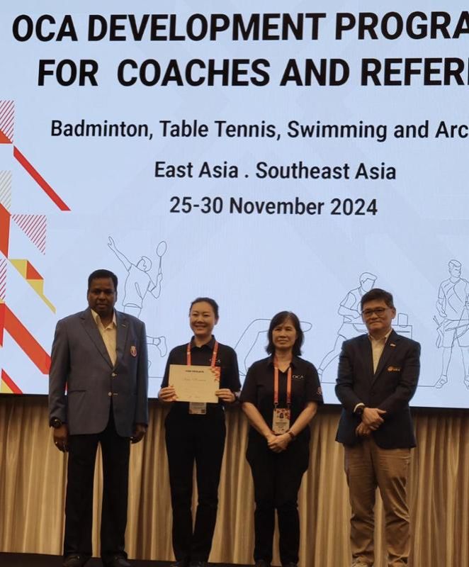 4月10日上午,在2025年宁波羽毛球亚锦赛举办之际,中国羽毛球协会举行了第七届裁判员委员会换届会议。运动训练学院教师孔明敏近五年内积极参加中国羽协重要活动,成功当选中国羽协第七届裁委会委员。