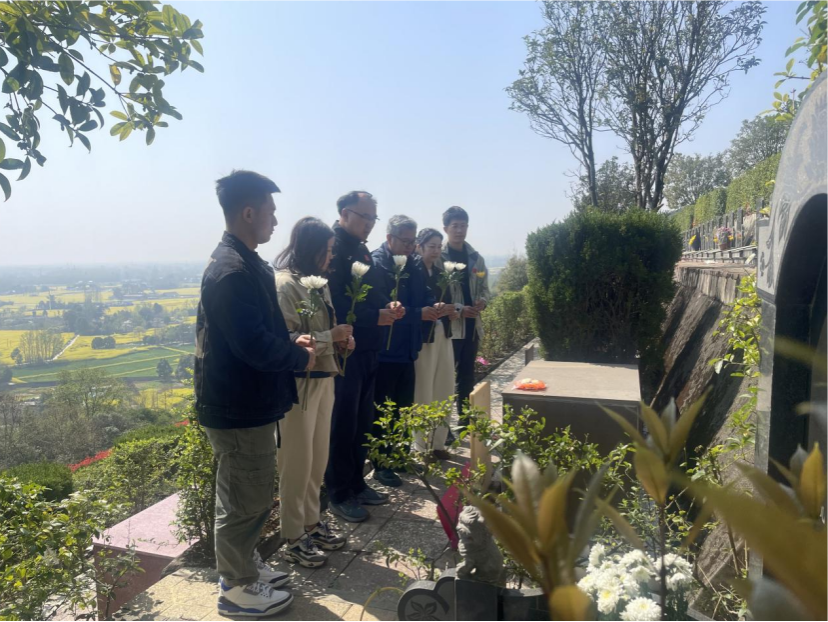 清明前夕,为追思怀贤风骨、缅怀先师伟业,运动医学与健康学院党委副书记刘余带领附属体育医院和学院新入职教师、医护人员以及学生代表一行8人,前往崇州白塔湖公墓,为附属体育医院和医学院创始人、中医运动医学的开拓者、一代武医宗师郑怀贤教授扫墓。