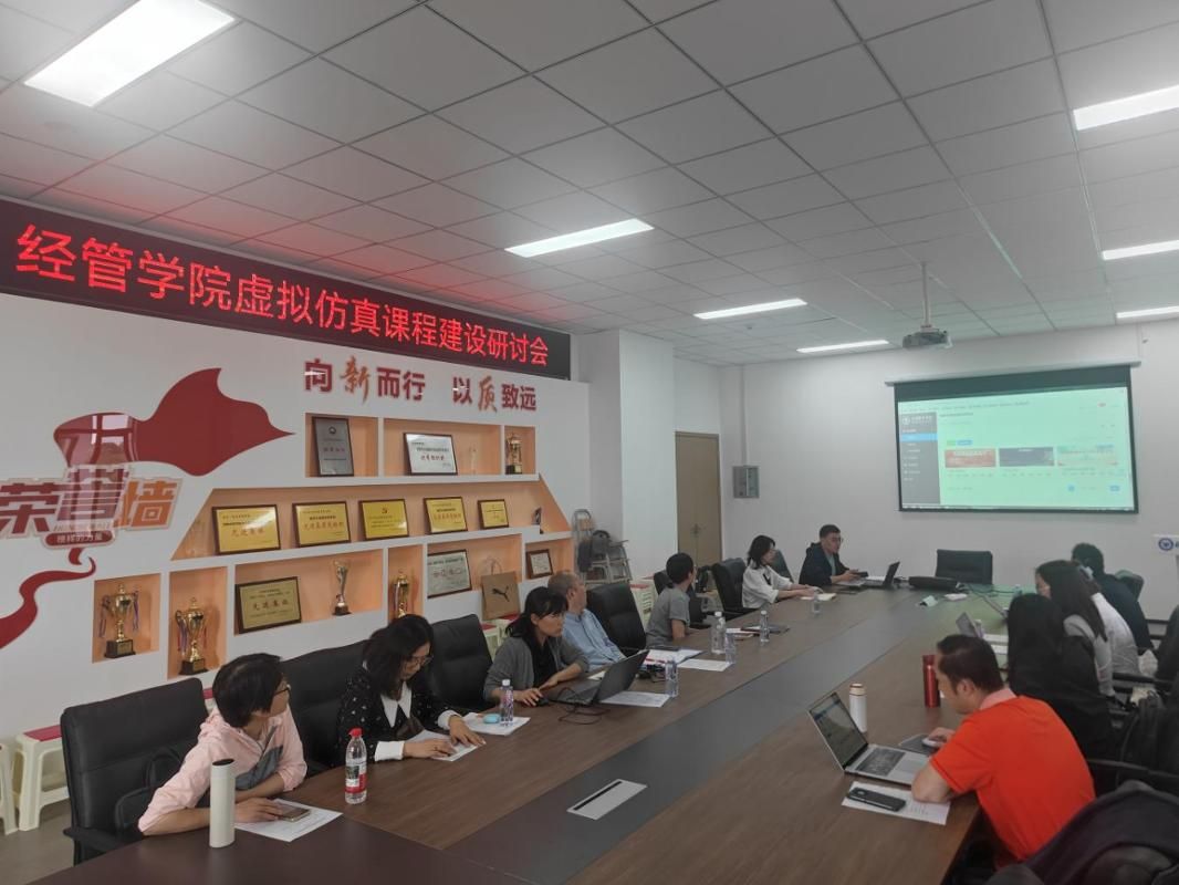 为深化教育教学改革,推进虚拟仿真技术与课程建设深度融合,经济管理学院于2025年4月22日在运动休闲馆328会议室举办虚拟仿真课程建设专题研讨会。会议由卿副院长主持,汇集本院教师代表、跨院系专家及技术企业代表等10余人,通过经验共享、技术研讨与资源推介,共探教学数字化转型新路径。
