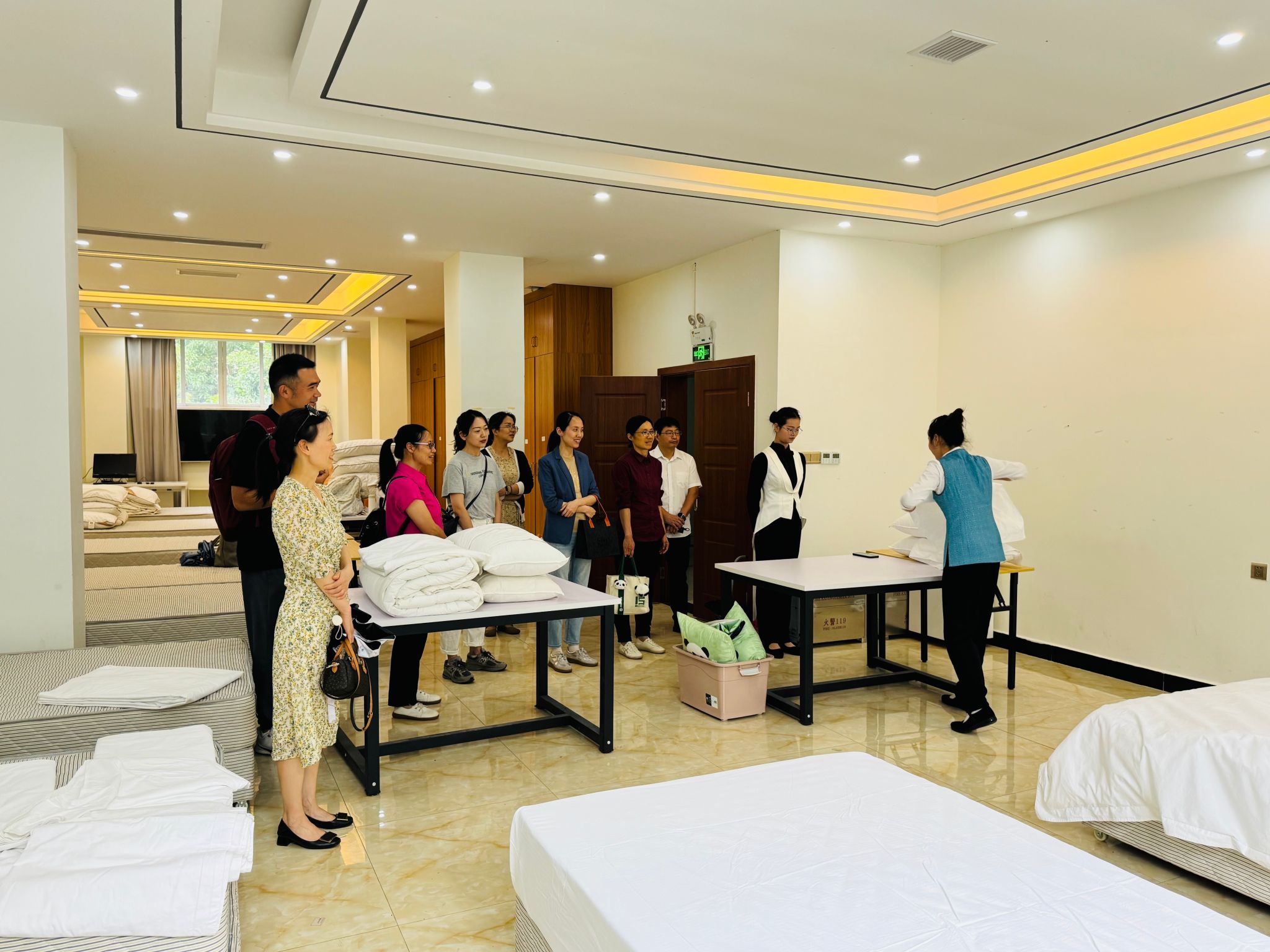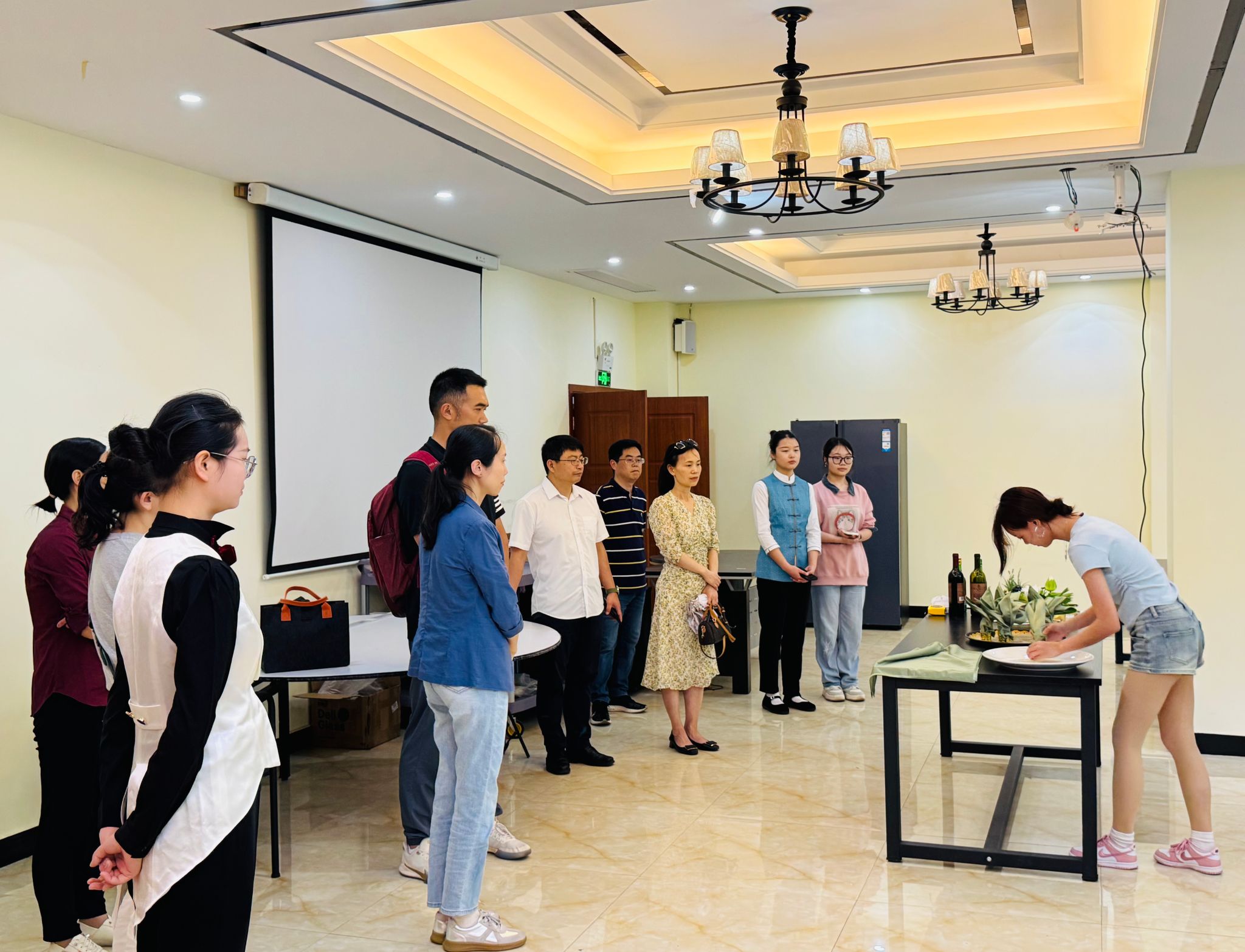 首先,在旅游与地理科学学院徐秀云书记、郭剑英院长和孙永兴副院长的带领下,重点参观了客房实训室、酒吧实训室、中西餐饮实训室、茶艺实训室等实训平台。深入了解酒店管理实训室建设、酒水调制与餐饮服务全流程实训项目策划,以及旅游接待实训场景的设计。双方围绕旅游服务行业需求、职业能力培养与课程设计衔接、跨专业实训资源共享等议题进行了热烈讨论。