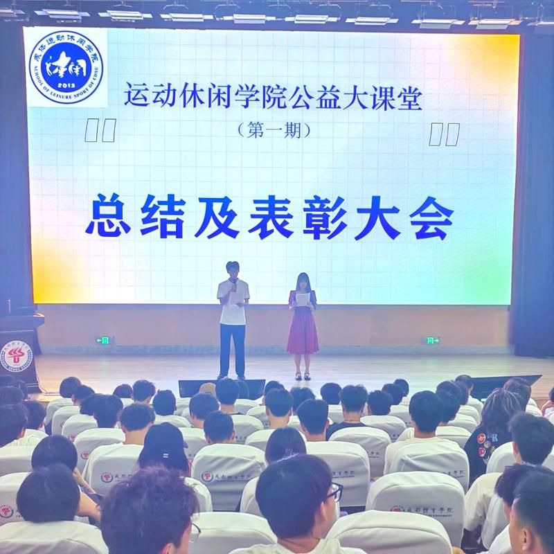 5月19日晚上七点,运动休闲学院在行健楼2楼同传室召开公益大课堂总结及表彰大会。樊莉副书记、蒋书君副院长、学生管理办公室、各公益课团队教练老师、团队助教学生们和2023级、2024级学生参会。