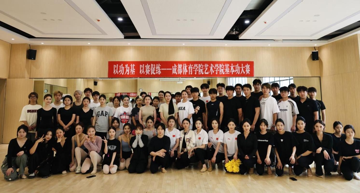 比赛分为基训部分和小组专项基本功两个部分,涵盖中国舞、运动舞蹈、国际标准舞三个专项,分时分场进行。赛前,同学们积极准备,反复练习规定动作,精心编排小组展示内容。比赛现场,同学们以优美的舞姿、饱满的热情、精湛的技艺,充分展现了扎实的基本功训练成果和对舞蹈专业的热爱。