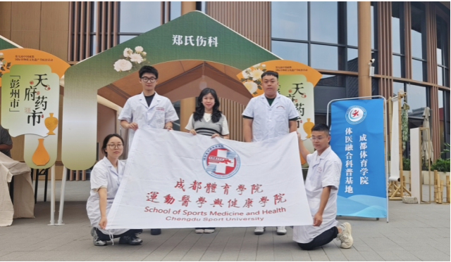 2025年5月26日,第九届中国成都国际非物质文化遗产节“天府药市”活动在彭州市举行,受活动主办方邀请,运动医学与健康学院(以下简称“医学院”)选派具有丰富奥运科医保障经验的秦朗和朱宇晨二位青年骨干教师带领中医学专业学生代表赴彭州参加此次活动。