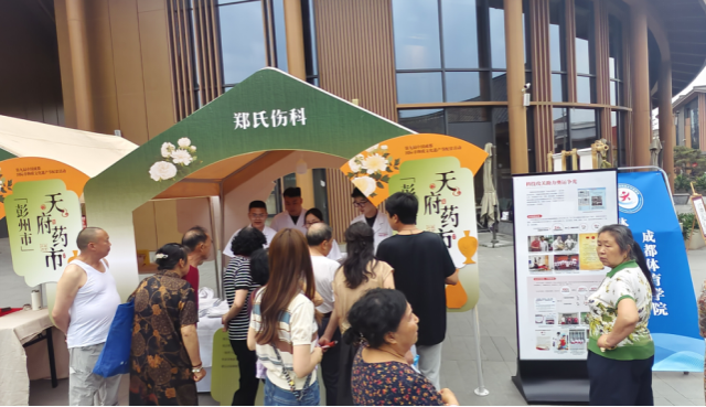本次活动以展示四川中医药文化为核心主题。医学院省级非物质文化遗产保护项目“郑氏伤科疗法”吸引了众多观众驻足参观。现场师生重点介绍了郑氏手法、郑氏伤科方药、运动损伤防治及运动促进健康等体医融合特色科普知识,并为120余名观众提供了健康咨询及义诊服务,发放科普宣传资料500余份。其中,两位曾受教于郑怀贤教授亲自诊疗的观众,对其精湛医术给予了高度评价。