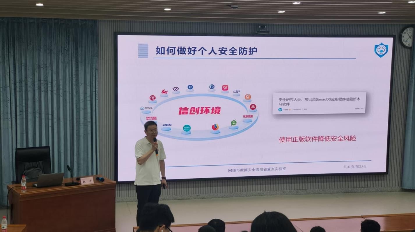 讲座从网络空间安全理解、典型案例分享、个人防护策略和发展趋势四个方面进行了全面深入的解读。他通过丰富的实战案例,深入剖析了当前网络安全面临的严峻挑战,结合实际工作生活,系统阐述了终端安全、应用安全、密码管理、信创和软件正版化等方面的防护措施,并重点分析了云计算、人工智能、量子计算等新技术带来的安全挑战与机遇。