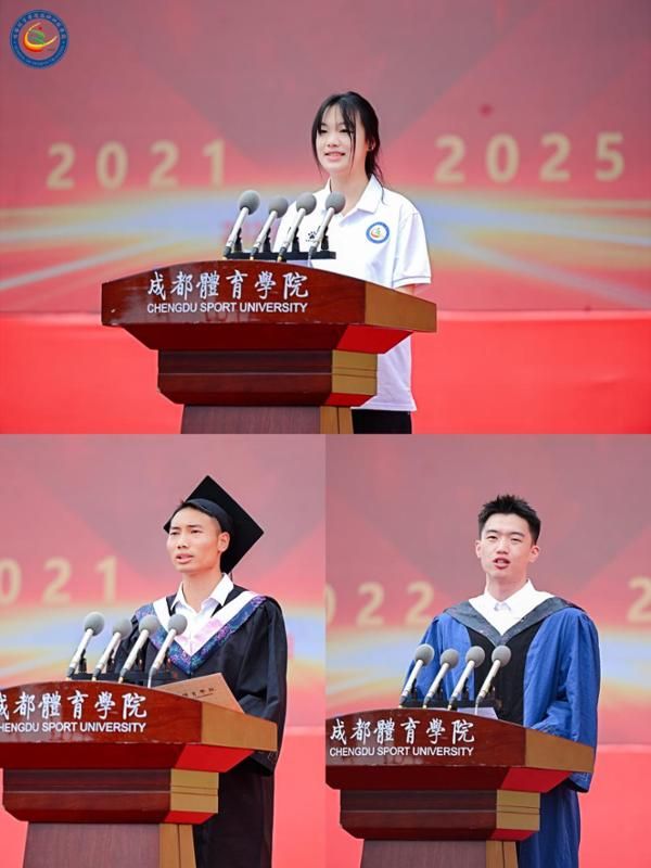 2022级本科生阙玉欣代表师弟师妹向毕业生送出了祝福;研究生毕业生代表杨林捷、本科生毕业生代表李习壮表示一定会谨记“行健不息、积健为雄”的校训,为体育事业奉献自身的力量。