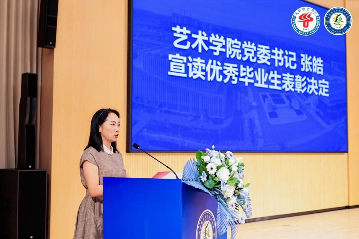 毕业生代表与在校生代表联袂演唱的《歌曲联唱》将仪式氛围进行充分烘托,随后在庄严的国歌声中毕业典礼正式拉开帷幕。艺术学院党委书记张皓郑重宣读优秀毕业生表彰决定,学院领导、导师代表、党支部书记分别为省级优秀毕业生和校级优秀毕业生颁奖。