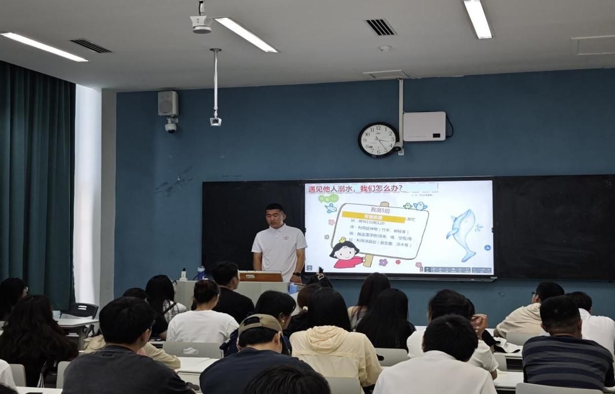为增强学生的安全意识和自我保护能力,体育教育学院于6月25—30日,组织全院学生开展防溺水知识和AED急救专题培训。培训由学校附属医院孙琳老师和游泳教研室组织的5名游泳专项研究生主讲。