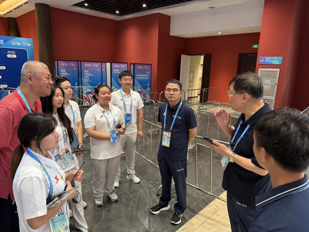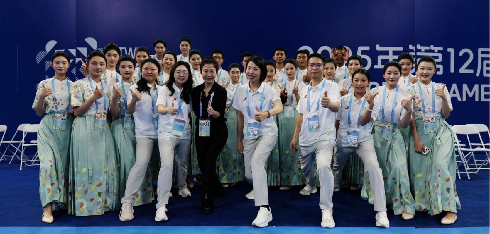 领队万千和樊芷吟两位老师和志愿者们在世运会期间以热忱坚守与专业素养,圆满完成了各项工作任务,向海内外展示了中国青年的责任担当与昂扬风貌,得到了各方的好评。未来,外国语学院将继续搭建赛事服务平台,引导学生积极参与,在世界舞台讲好中国故事,让“强国有我”的青春誓言在实践中绽放,为学校高质量发展注入青春动能。