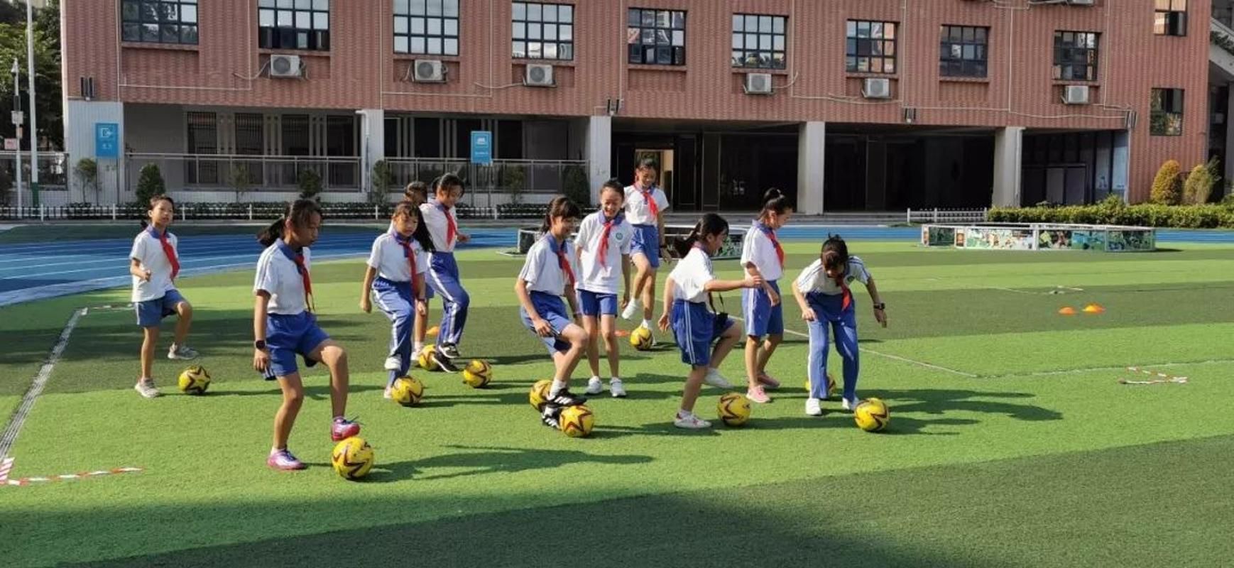 在金岩乡中心小学,支教老师文莉娜为四年级学生设计了“足球小将启蒙营”。她从基础认识足球开始,带领孩子们做足球韵律操,让热身活动变得有趣,操场上充满了欢声笑语。