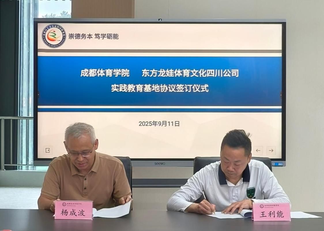 为深化校企合作,推动产教融合人才建设。运动训练学院于9月11上午在网球馆2楼会议室与东方龙娃体育文化四川有限公司举行共建校级实践教育基地签约授牌仪式。
