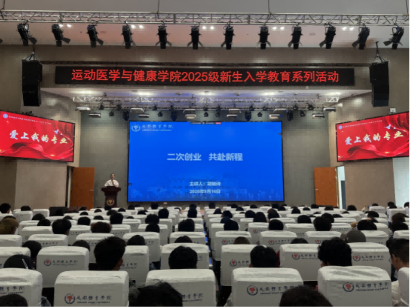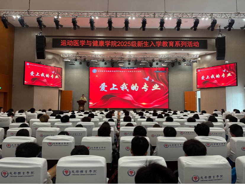 2025年9月16日,运动医学与健康学院举行了2025级新生入学教育。主会场在图书馆学术报告厅,同时有行健楼同传室、行健楼多功能室两个分会场。学院领导发表讲话,全体新生及新生班主任、辅导员参会。会议由李顺昌副院长主持。