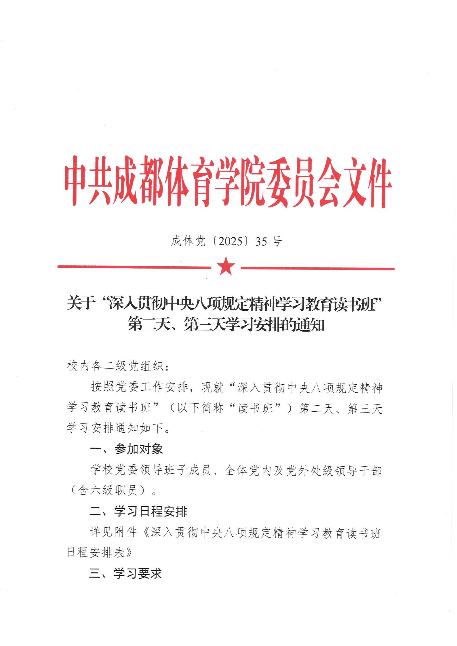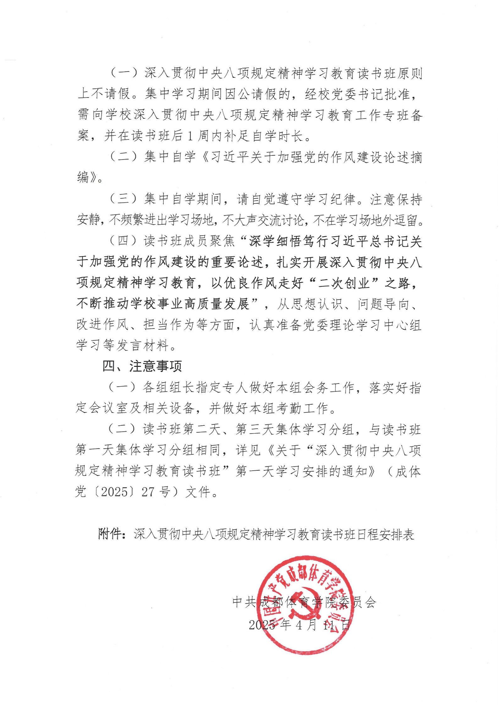 关于“深入贯彻中央八项规定精神学习教育读书班”第二天、第三天学习安排的通知【成体党[2025]35号】4.16.pdf