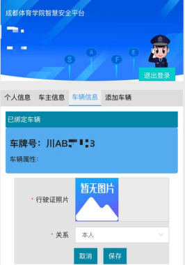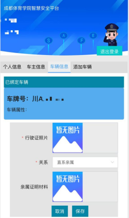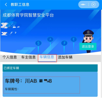 2.选择“教职工信息”,进入“车辆信息”栏目。