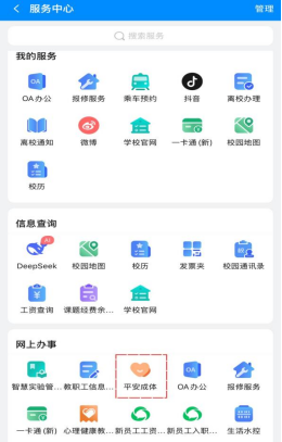 1.登录“智慧成体”APP,进入“平安成体”栏目。