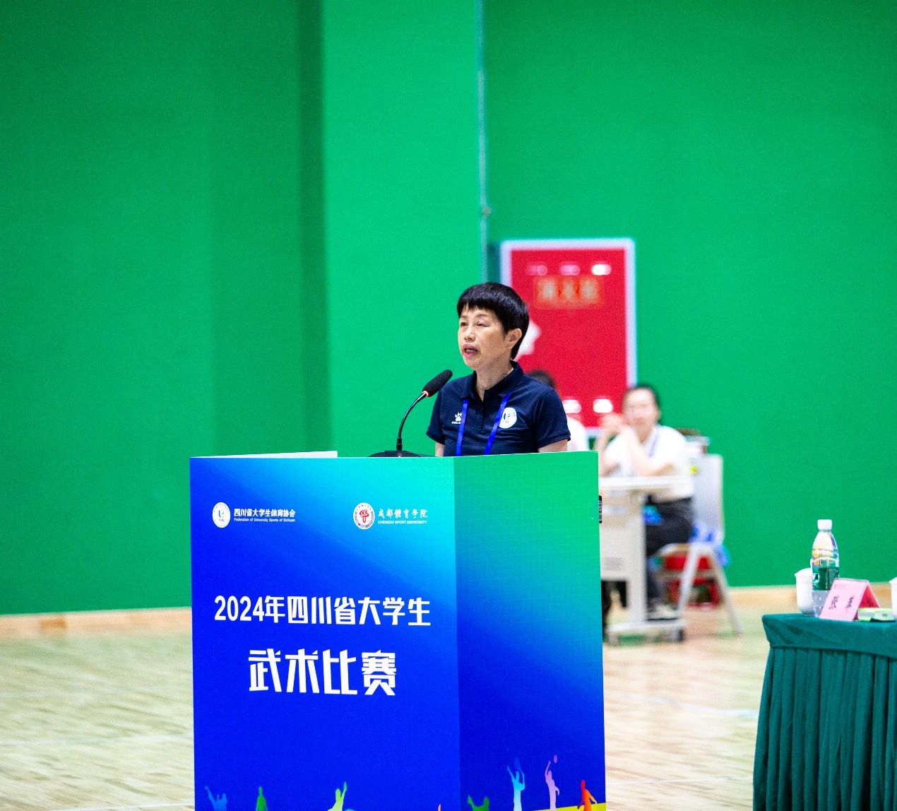 张萍代表学校对各参赛高校代表队表示热烈欢迎,并对前期赛事筹备工作的启动、赛场的精心打造、赛事方案的持续优化以及安全保障措施等方面进行了汇报。她指出,四川省大学生武术比赛不仅是省内高校间交流的重要平台,更对推动各高校武术教学、训练以及科研成果的共享与学习起到了积极的促进作用。作为承办单位,allwincity万象城官方网站将秉持高度的责任感和使命感,力求将本次比赛打造成为一场高水准、有特色且安全有序的体育盛事。