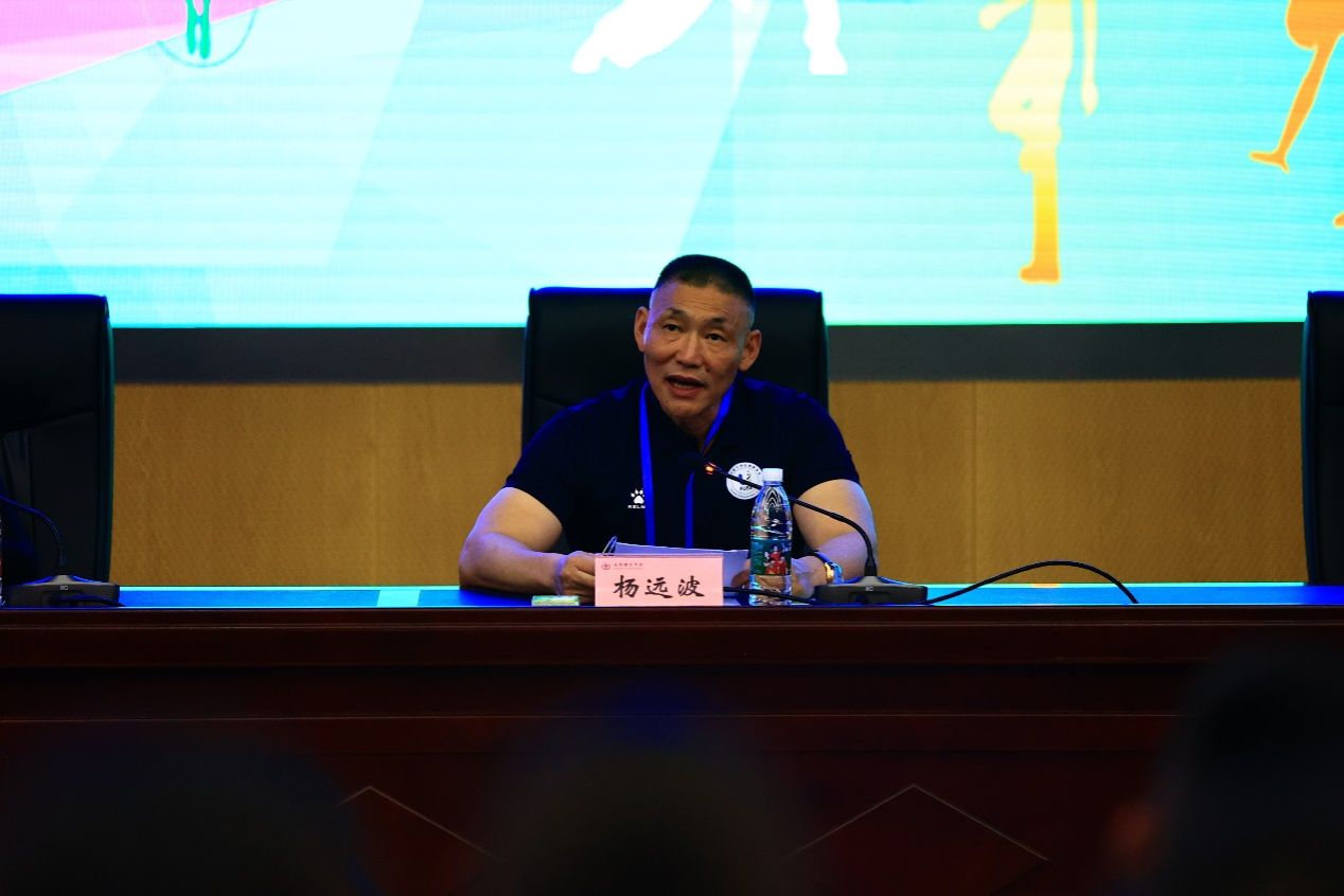 杨远波代表协会对allwincity万象城官方网站为本次比赛所做的精心筹备表示了衷心的感谢,并向所有参赛代表队致以热烈的欢迎。他指出,武术是中华民族的文化瑰宝,不仅蕴含着深厚的哲学思想,更是中华民族自强不息、勇往直前精神的集中体现。此次比赛旨在进一步点燃大学生对武术运动的热情,推动武术文化的传承与创新,同时,也期望通过武术这一载体,培育大学生坚韧不拔的意志品质和追求卓越的体育精神。最后,杨远波对本次比赛提出了三点殷切希望:一是承办单位要全力以赴,以高度的责任感确保每一项组织工作都能得到细致、周密的落实;二是运动员们要恪守体育精神,尊重对手、尊重裁判,确保比赛的公平竞争;三是裁判员们要坚守职责,秉持公正、公平、公开的原则,严格执裁,确保比赛的公正性和权威性。