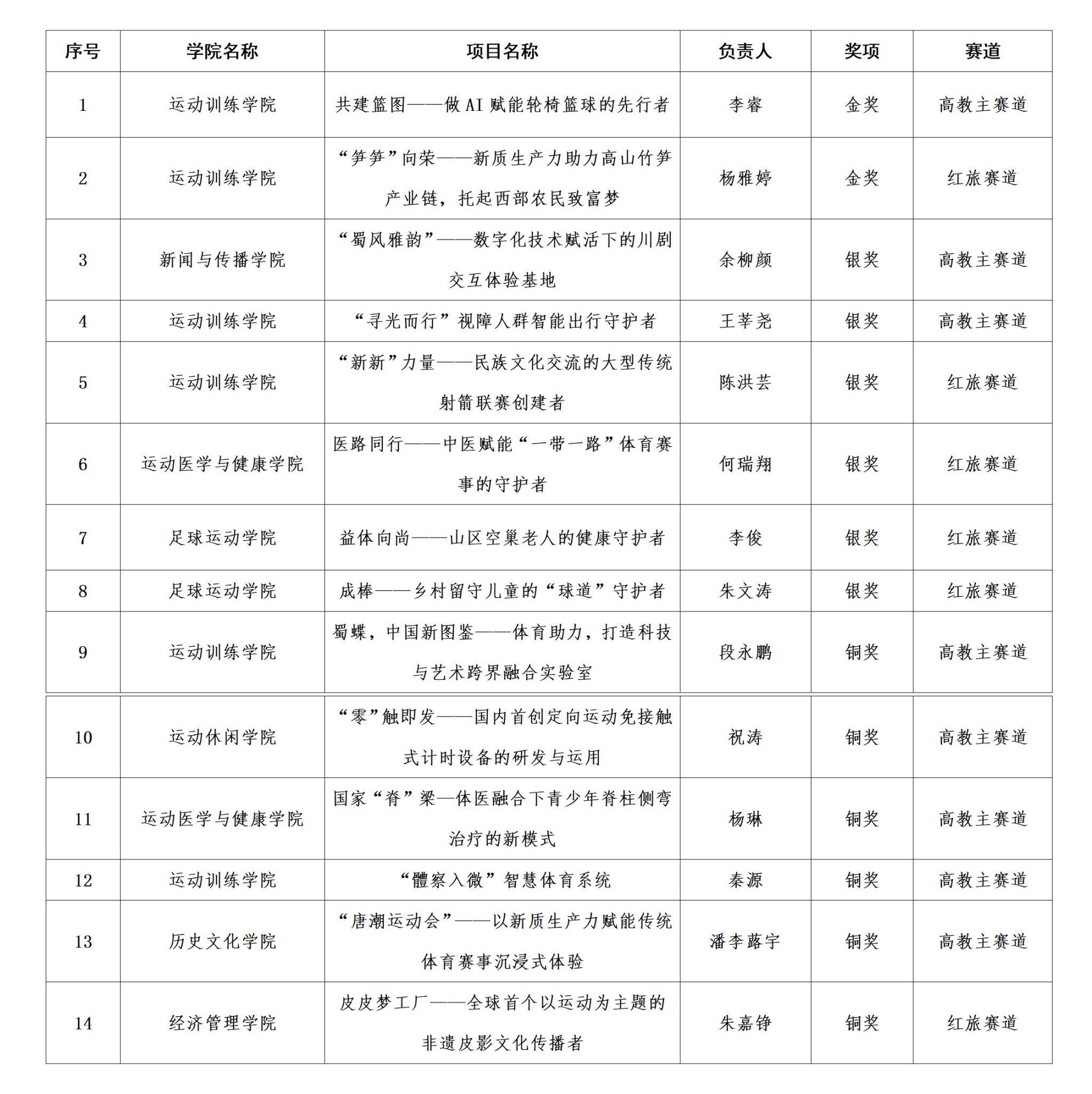 万象城获四川省国际大学生创新大赛奖项基本情况一览表