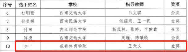 就业赛道金奖获奖选手——体育教育学院李一