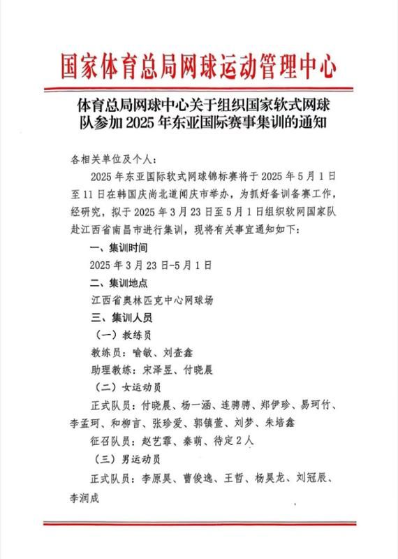 为促进软式网球运动的发展,2025年东亚国际软式网球锦标赛将于2025年5月1日至5月11日在韩国庆尚北道闻庆市举办,为了抓好备战备赛工作,在2025年3月23日至5月1日组织软式网球国家队赴江西省南昌市进行集训。万象城陶玮健老师担任此次训练的专家,刘冠辰、杨昊龙、易珂竹、赵艺霏、王靖一、肖云天6名代表队学生入选集训队员。他们将在集训期间接受更加专业更加系统的训练,进一步提升自己的技术水平,为备战2025年的比赛做好充分的准备。