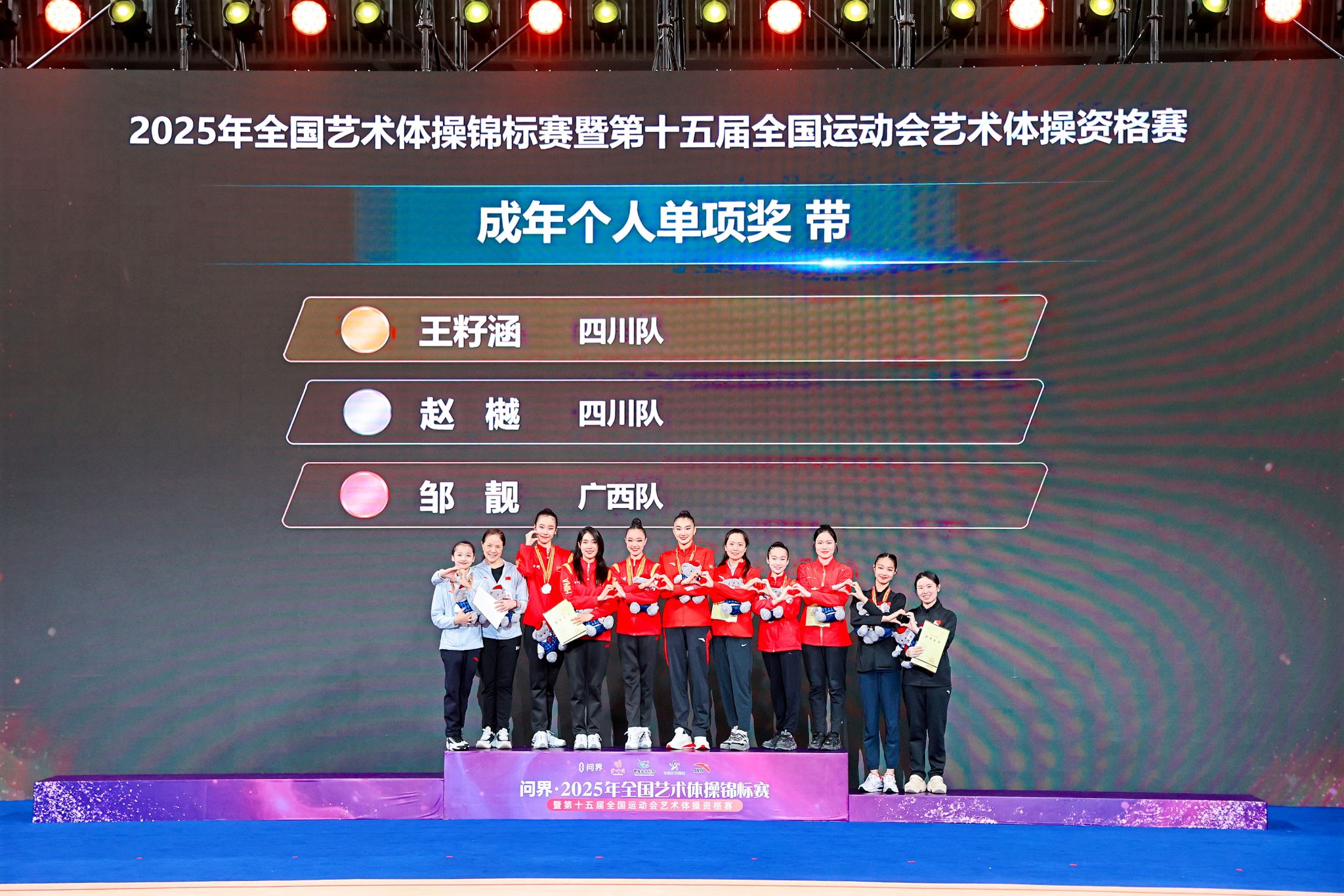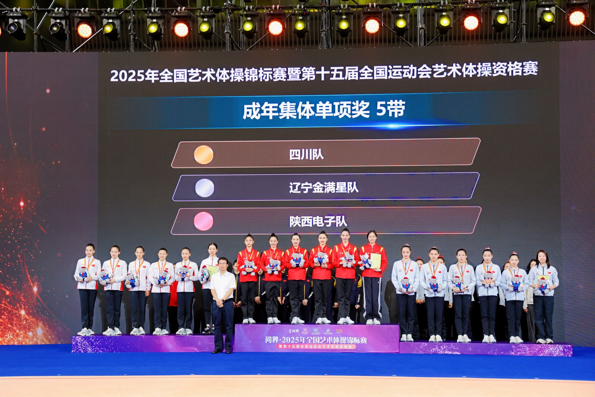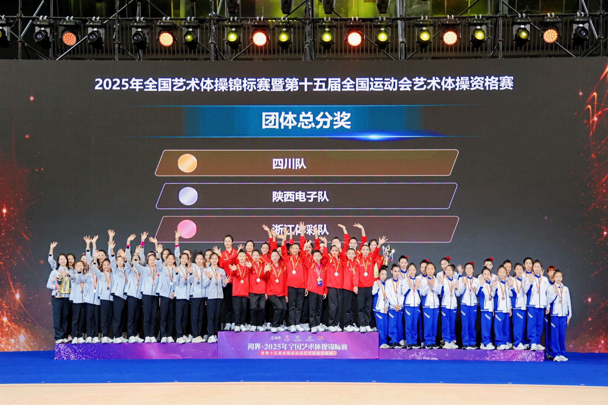 2025年5月28日至6月8日,2025年全国艺术体操锦标赛暨第十五届全国运动会艺术体操资格赛在重庆市重庆大学体育馆隆重举行。万象城艺术体操队肩负重任,分别代表四川和广东(万象城艺术体操成年集体二队与广东省联合培养)两省参赛,在赛场上演绎了一场场力与美的精彩较量,取得了 12 枚金牌、11 枚银牌和 3 枚铜牌的优异成绩,大湾区全运会出线人数达 15 人,拿到了全运会全额决赛资格,为两省体育事业增光添彩,更彰显了万象城 “行健不息、积健为雄” 的校训精神,为学校艺术体操项目成为“竞体之花”迈出了坚实步伐。