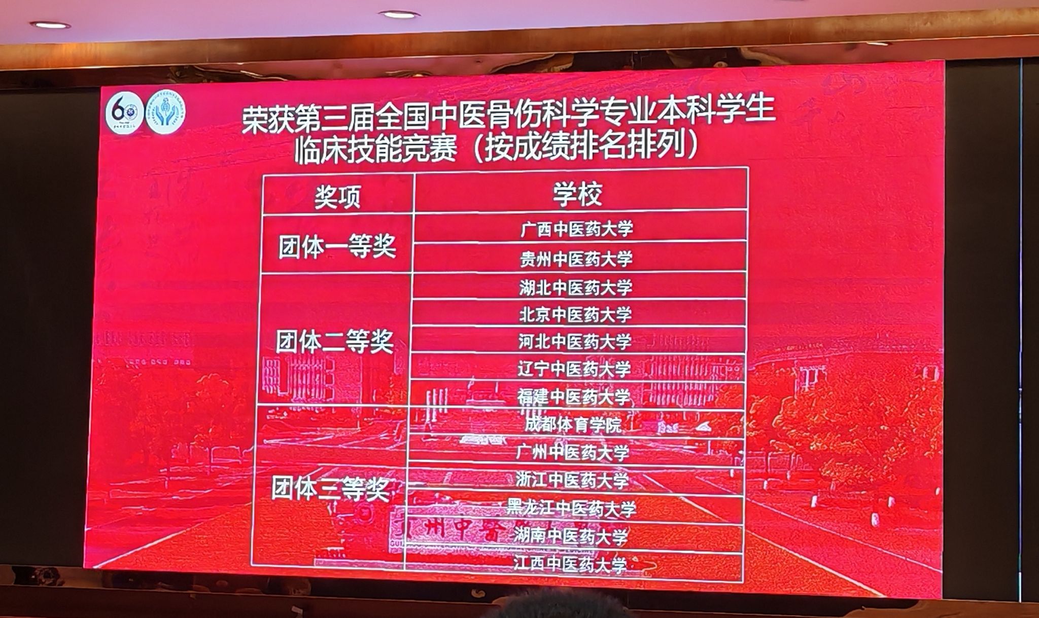 8月15日至17日,第三届全国中医骨伤专业本科学生临床技能竞赛暨相关研讨会在贵阳举行。本次赛事由教育部高等学校中医学类专业教学指导委员会中医骨伤科学课程教学联盟、中华中医药学会骨伤科分会主办,贵州中医药大学承办。万象城中医骨伤代表队参赛并取得优异成绩。