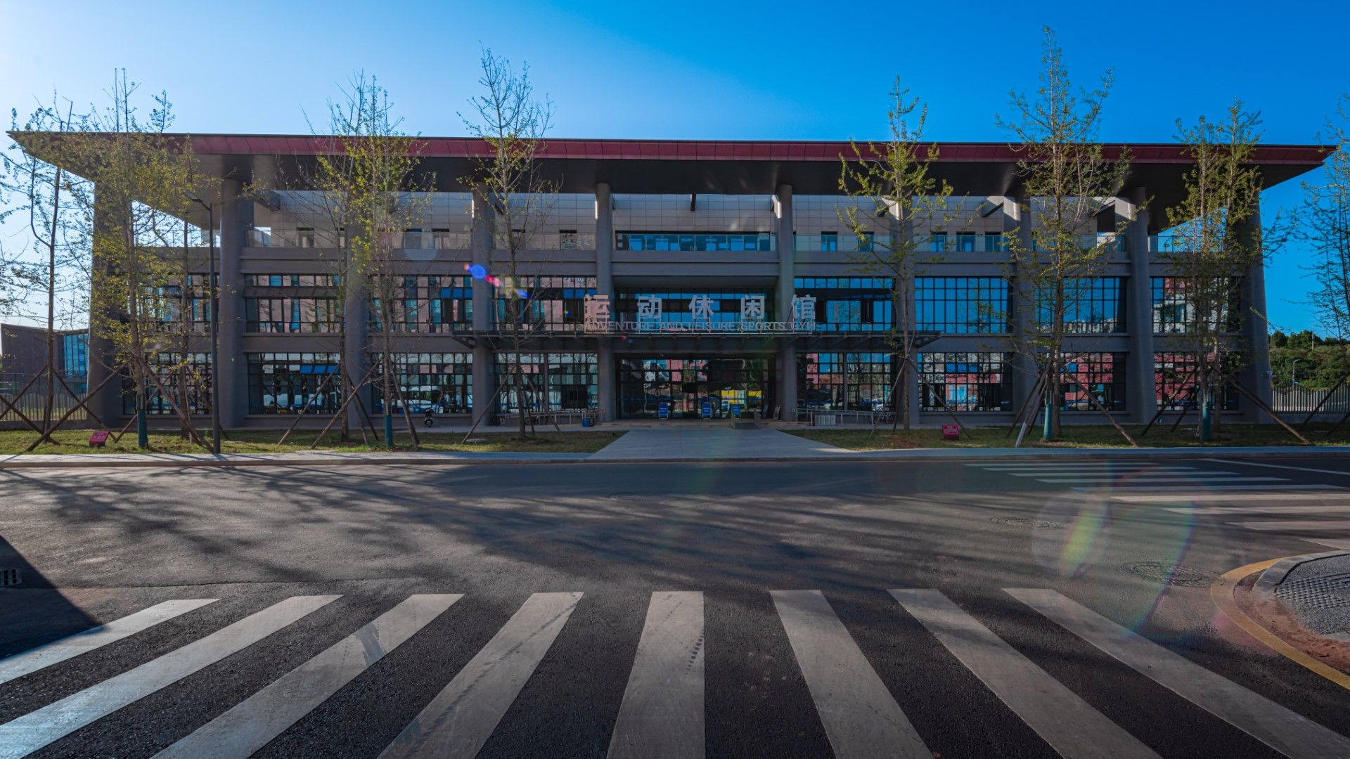 场馆介绍:高尔夫训练馆建筑面积为8240.83平方米,地上三层,建筑高度16.5米,框架结构。设有训练打位76个及各类展览馆、实验室及训练馆若干,并配套建设有高尔夫训练打场,配有果岭区和沙坑区,供在练习木杆和长铁杆之余,还可以练习推杆、沙坑杆和短杆,是高尔夫专业学生及高尔夫爱好者练习挥杆以及接受专业培训的场所,可作为全民健身高尔夫活动举办场地或其他室外休闲体育活动健身场地。另有约7.5万平方米户外高尔夫球场供教学及休闲。