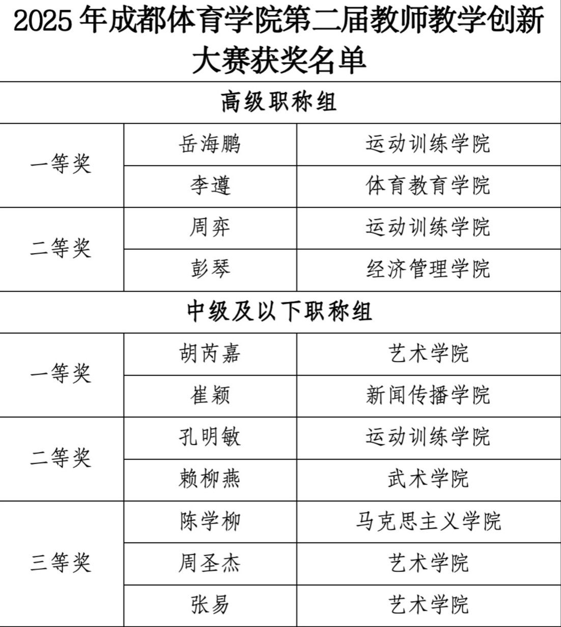 本次比赛的一大特色是参赛教师结合学科特色,展示了多元化的教学创新实践,特别是中青年教师展示出良好的信息化素养和教学创新潜力。高级职称组岳海鹏教授的《国球展国魂,育才更育人——弧圈球技术的战术运用》将乒乓球技术与课程思政深度融合;中级职称组胡芮嘉讲师的《中国古典舞基训》创新融合太极元素,探索艺术与体育的跨学科联动。此外,人工智能、虚拟现实等前沿技术的教学应用成为亮点,如《AI赋能下的思政课混合式教学》《VR虚拟技术下的武术运动探索》等作品,充分体现教师对信息化教学的积极探索。