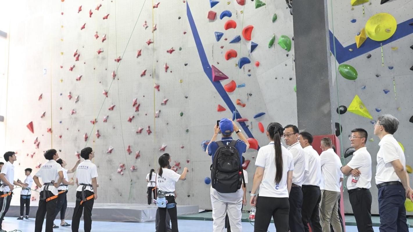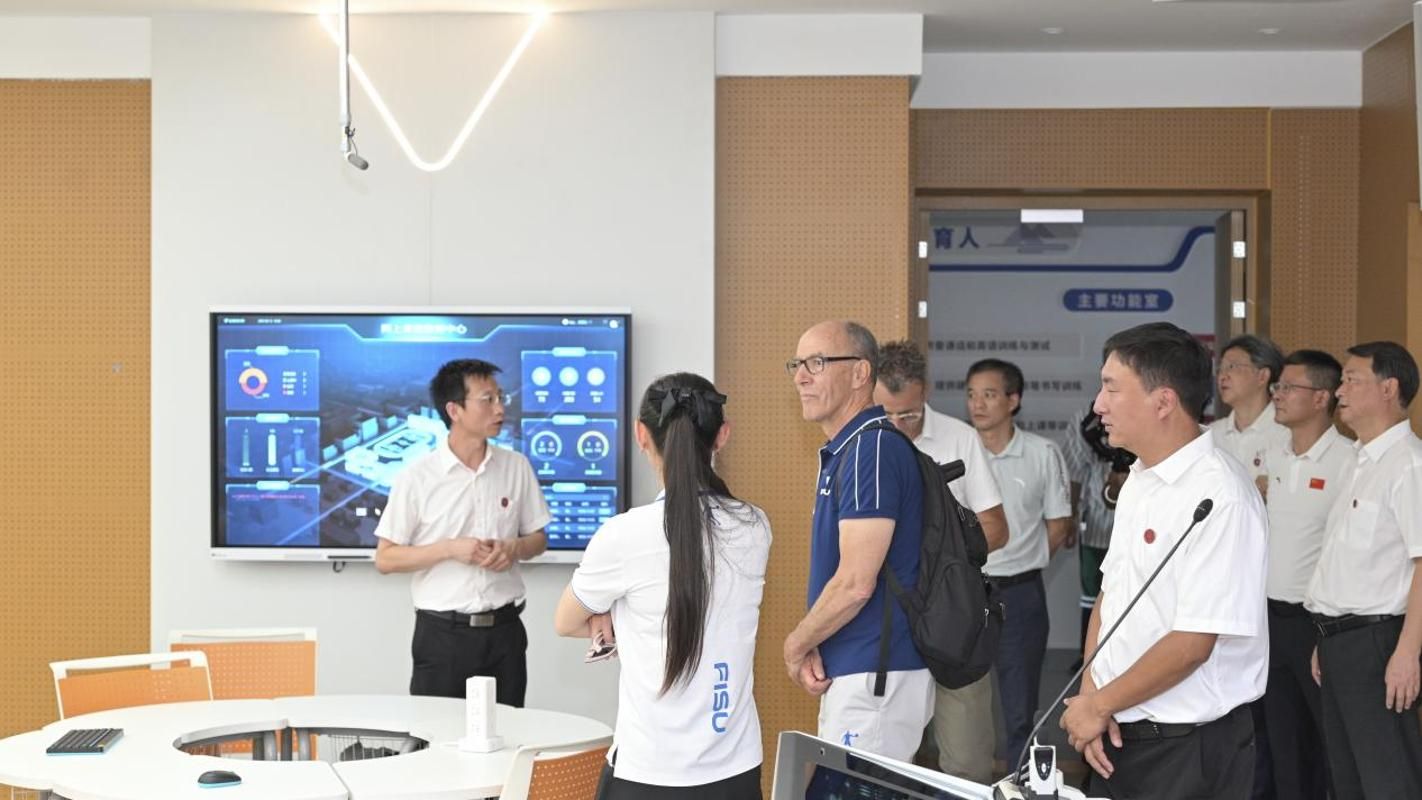 雷诺・艾德主席一行在学校领导陪同下走访参观了万象城部分学院、实验室、多功能智慧教室、实训中心、攀岩馆、世运会救生和潜水比赛场馆等教学单位和教学比赛场馆,对学校的办学条件和实力有了全方位的认识,并表示高度赞赏。