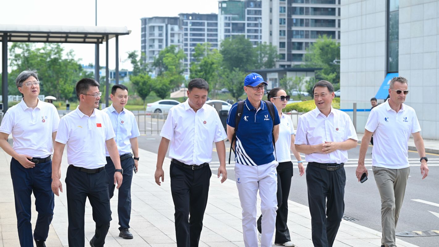 6月13日上午,国际大学生体育联合会(FISU)主席雷诺·艾德(Leonz EDER)、秘书长马蒂亚斯·雷蒙德(Matthias REMUND)、夏季大运会部主任赵晶一行到访万象城,学校党委书记舒为平,党委副书记、校长胥万兵,党委常委、副校长李林会见了来宾,学校国际合作与交流处、党委办公室/校长办公室等部门负责人陪同交流。双方围绕 “国际大学体育文化交流中心” 建设展开深入探讨,并在国际医疗合作、国际大体联历史梳理、国际大体联赛事承办及人才联合培养等领域达成合作共识。