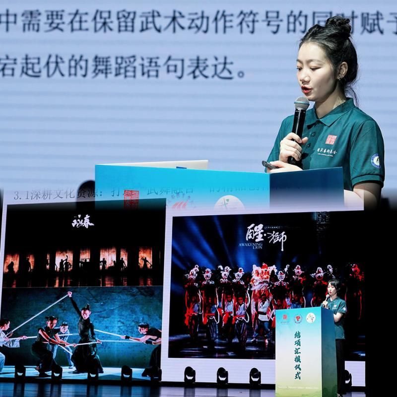 结项汇报仪式分为破茧·学术之光、织梦·创想之翼、留影·武舞绘卷等篇章,逐一进行了论文、脚本和视频汇报,形式多样、内容详实的成果汇报,充分展现了该项目的培养成效和取得的累累硕果。