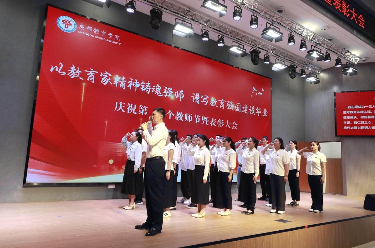 会上,四川省“四有”好老师荣誉称号获得者岳海鹏教授带领2025年新进教师庄严宣誓,立志为教育事业奉献力量。