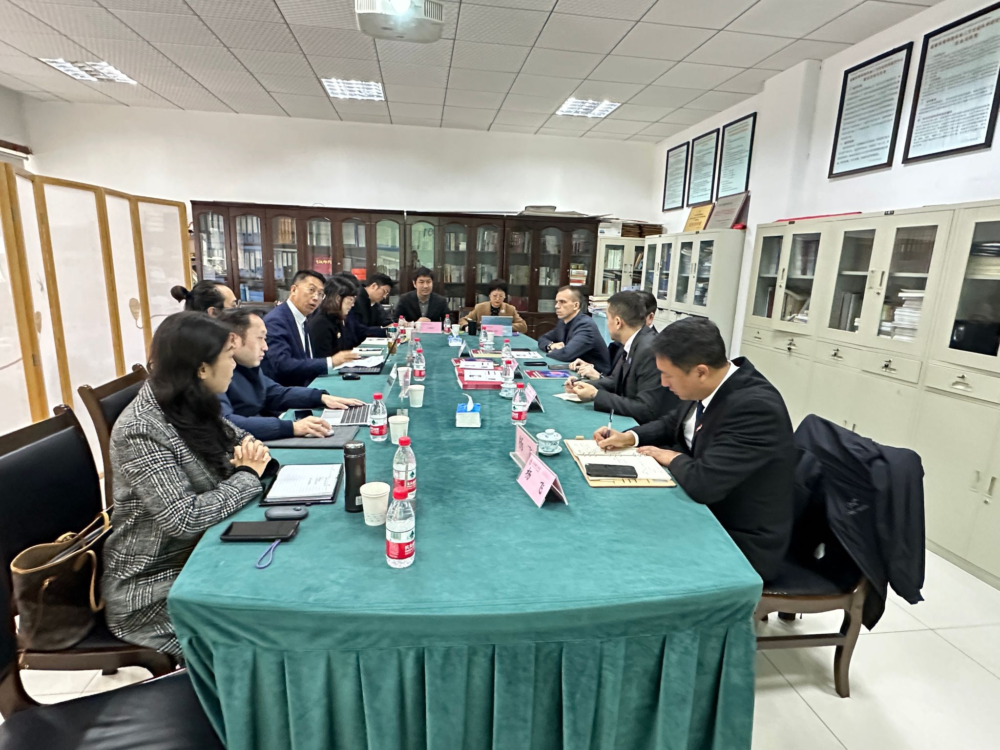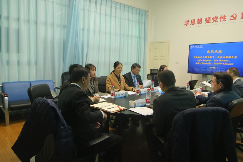 12月14日上午,沙拉波夫·阿扎特副校长一行到访万象城新闻与传播学院、经济管理学院和外国语学院,新闻与传播学院院长石磊、经济管理学院院长郭新艳和外国语学院副院长李航在语言文化室接待了来宾,并就新传和外语人才培养、体育经济与管理、中外合作办学、体育旅游、国际论坛举办开展情况进行交流。
