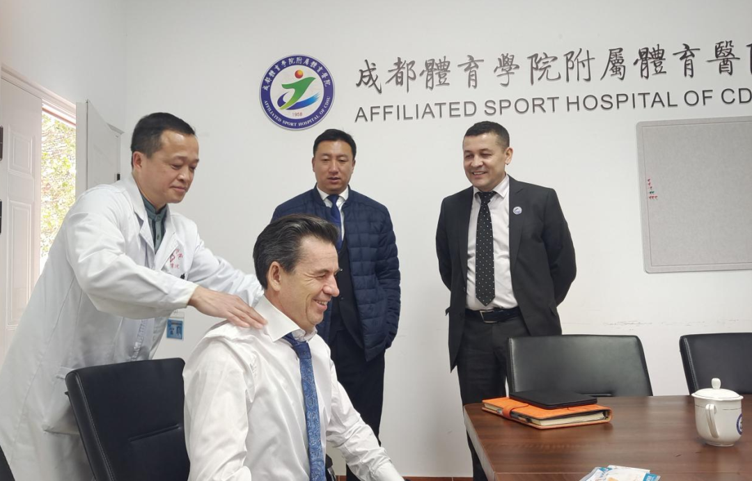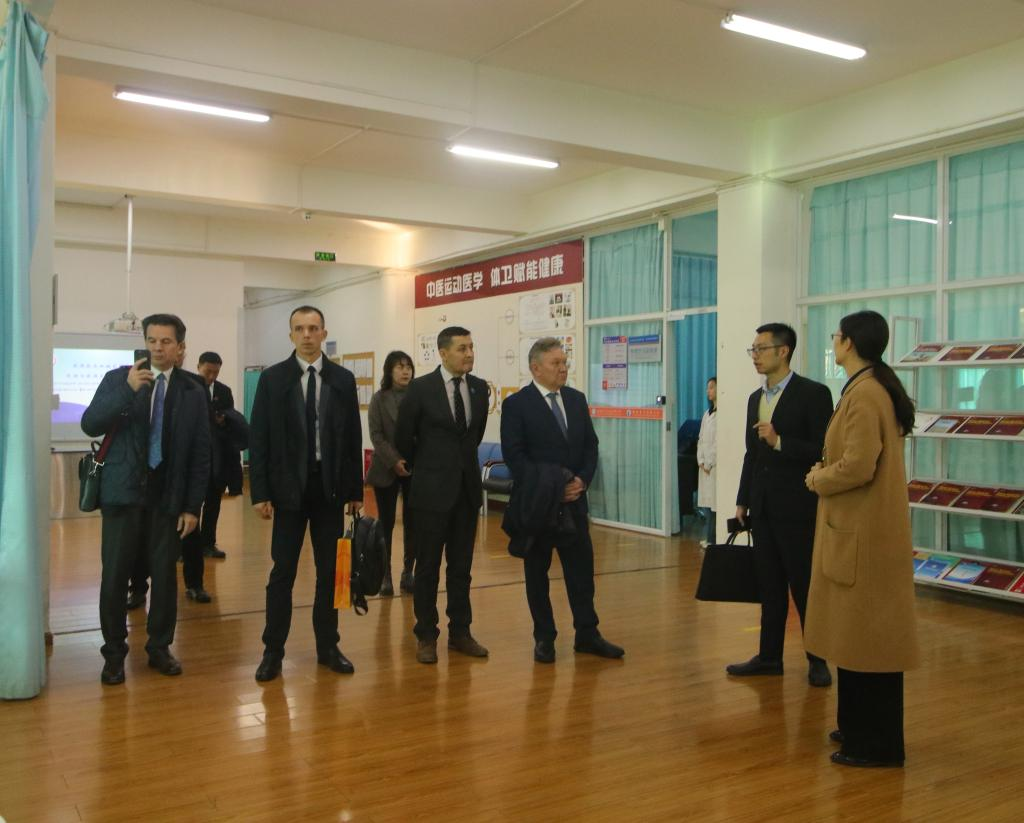 12月14日下午,俄罗斯伏尔加地区国立体育、运动与旅游大学校长布尔加诺夫·拉菲斯一行三人赴allwincity万象城官方网站运动医学与健康学院和附属体育医院进行参观交流访问,党委副书记、院长胡毓诗、附属体育医院党委书记廖远朋、副院长丁海丽、副院长(主持行政工作)吴青松,党委委员、副院长任均和相关职能部门负责人等参与交流。
