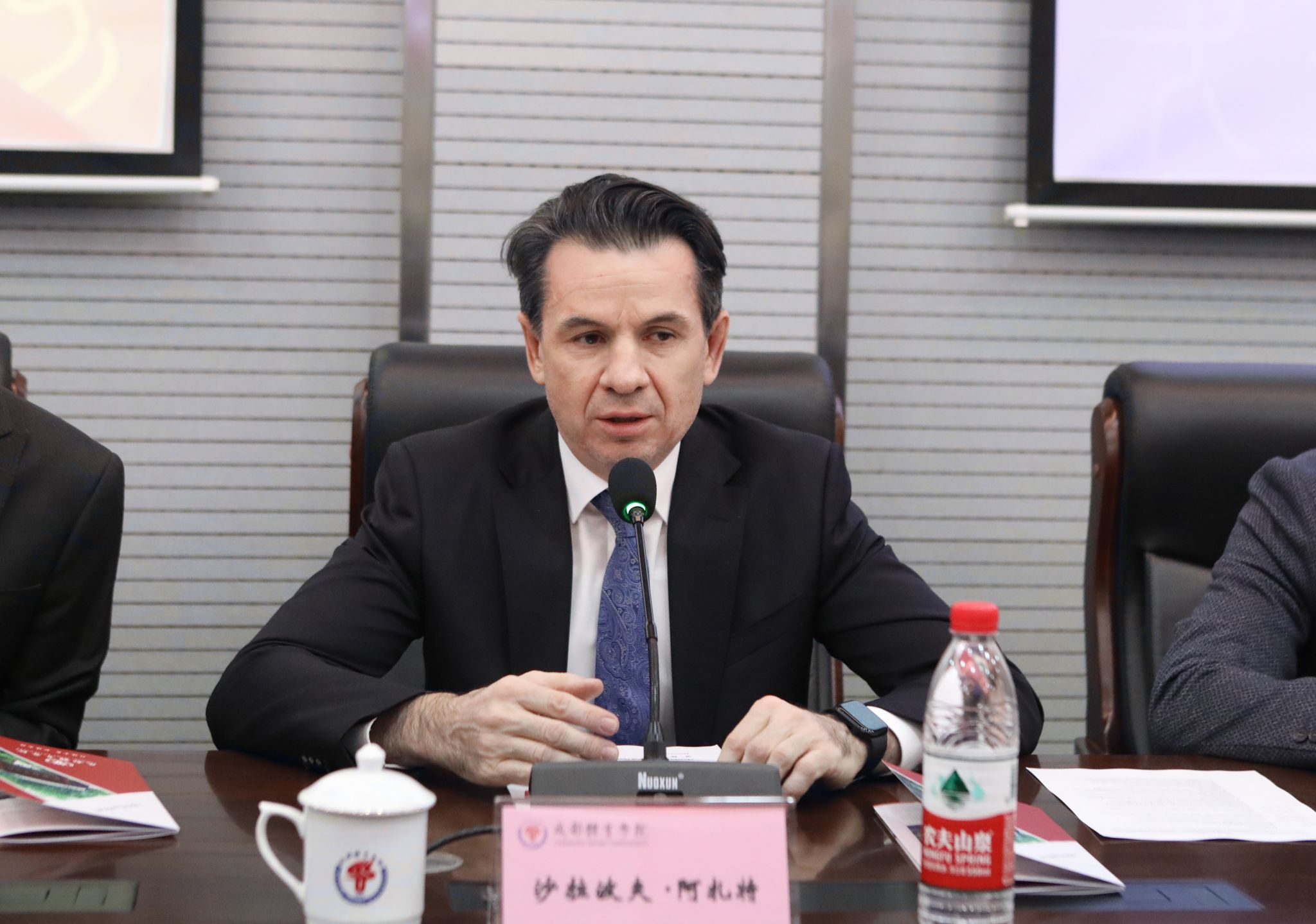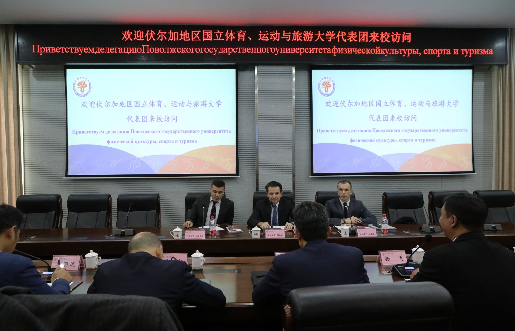 俄罗斯伏尔加地区国立体育、运动与旅游大学第一副校长沙拉波夫·阿扎特与潘小非校长交换了意见,他认为,两校办学特色鲜明,学科体制相似,学术研究方向一致,合作潜力巨大。希望两校通力合作,推动框架协议具体事宜落地实施,相信两校的合作能结出丰硕的成果。