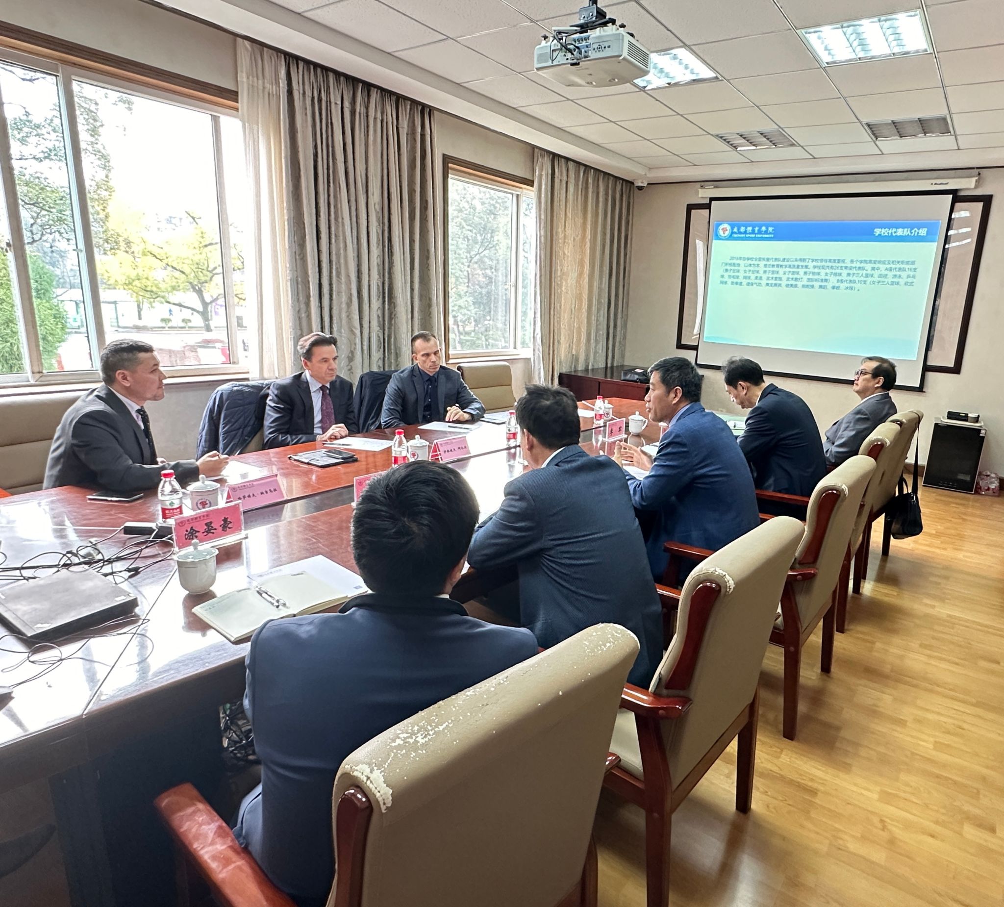 为进一步加强国际交流与合作,确保校际合作协议尽快落地,12月11日—15日期间,俄罗斯伏尔加地区国立体育、运动与旅游大学校长Rafis Burganov(布尔加诺夫·拉菲斯)率第一副校长Azat Sharapov (沙拉波夫·阿扎特)、副校长Andrey Nazarenko(纳扎伦科·安德烈)一行四人对万象城进行为期5天的访问,深入交流两校合作细节,推动合作落地见效。
