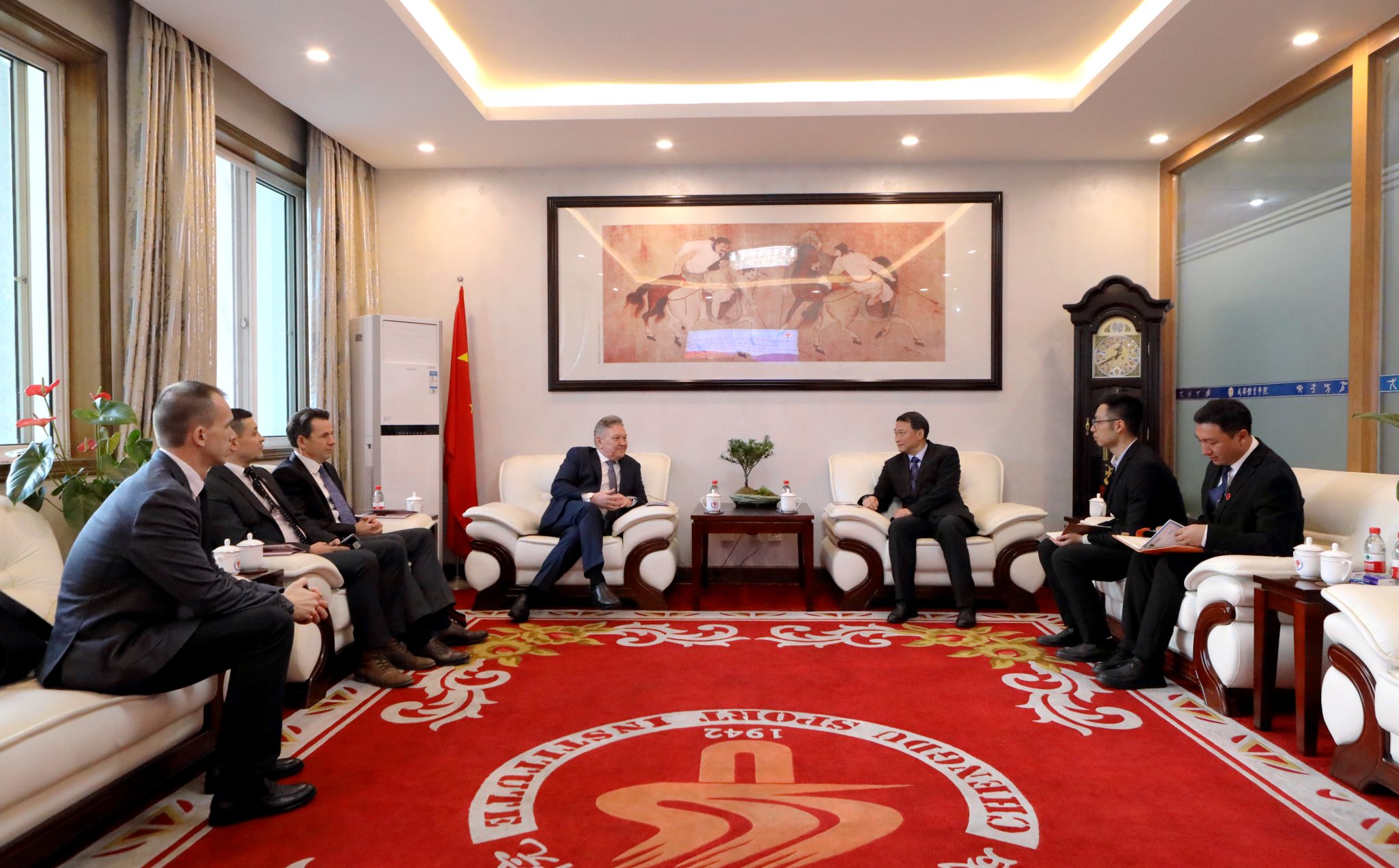 12月12日上午,俄罗斯伏尔加地区国立体育、运动与旅游大学第一副校长沙拉波夫·阿扎特一行到万象城历史文化学院参与座谈交流。历史文化学院副院长宋秀平、学院党委副书记张玲玲对学院概况、人才培养、传统体育文化方面进行了介绍,通过参观体育史博物馆,沙拉波夫·阿扎特副校长一行也了解到中国传统体育文化及其深厚的体育历史,希望双方体育史专家一道,共同挖掘中俄古代体育史,产生一批有影响的成果。