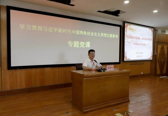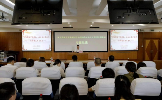 6月25日下午,学校党委副书记胥万兵在同传室以《以主题教育为契机,推动高素质教师队伍建设提质增效》为主题,为机关全体党员讲授学习贯彻习近平新时代中国特色社会主义思想主题教育专题党课。