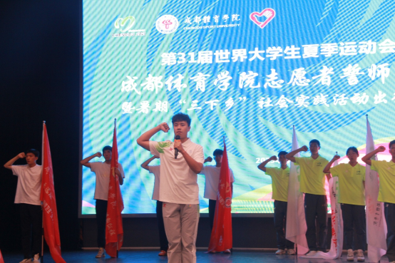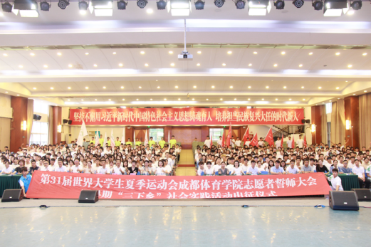 通过此次大运会志愿者誓师大会暨暑期“三下乡”出征仪式,相信同学们定能脚踏实地、坚定理想、不忘初心、砥砺前行,在成都大运会志愿服务工作和暑期“三下乡”社会实践活动中彰显出成体青年的昂扬斗志和过硬本领!