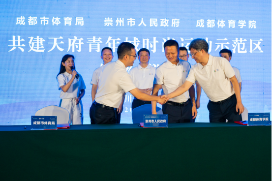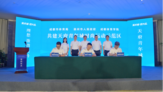 7月14日,“聚焦体育产业建圈强链共建天府青年城时尚运动示范区”签约仪式在崇州市天府青年城举行。学校党委书记舒为平,党委常委、副校长李林,共青团成都市委书记王冬冬,成都市体育局副局长祝江力,崇州市市委副书记、市长饶程分别代表协议方出席了签约仪式。学校发展规划处、运动医学与健康学院、经济管理学院和天府国际体育赛事研究院负责人参加签约仪式。