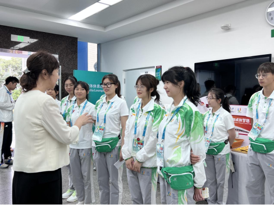 志愿者们纷纷表示:“非常荣幸能担任本次大运会的志愿者,学校和场馆的老师们对我们的关心爱护让我们倍感温暖,作为体育学子能够在‘自己家’参加体育赛事志愿服务,自己的主场,我们必定会以饱满的热情、真诚的态度、温馨的服务,确保大运会艺术体操比赛顺利举行,向世界展现中国青年蓬勃向上、奋发有为的青春风范,为大运会交一份满意的答卷。”