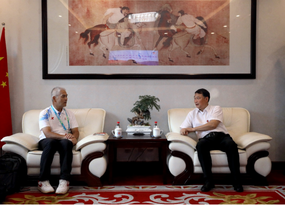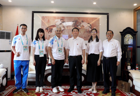 7月27日下午,学校党委书记舒为平在第一行政楼接待室接见台湾体育大学运动与健康科学学院院长黄启煌教授,学校运动医学与健康学院院长胡毓诗、港澳台事务办公室主任李在辉等一同参会。