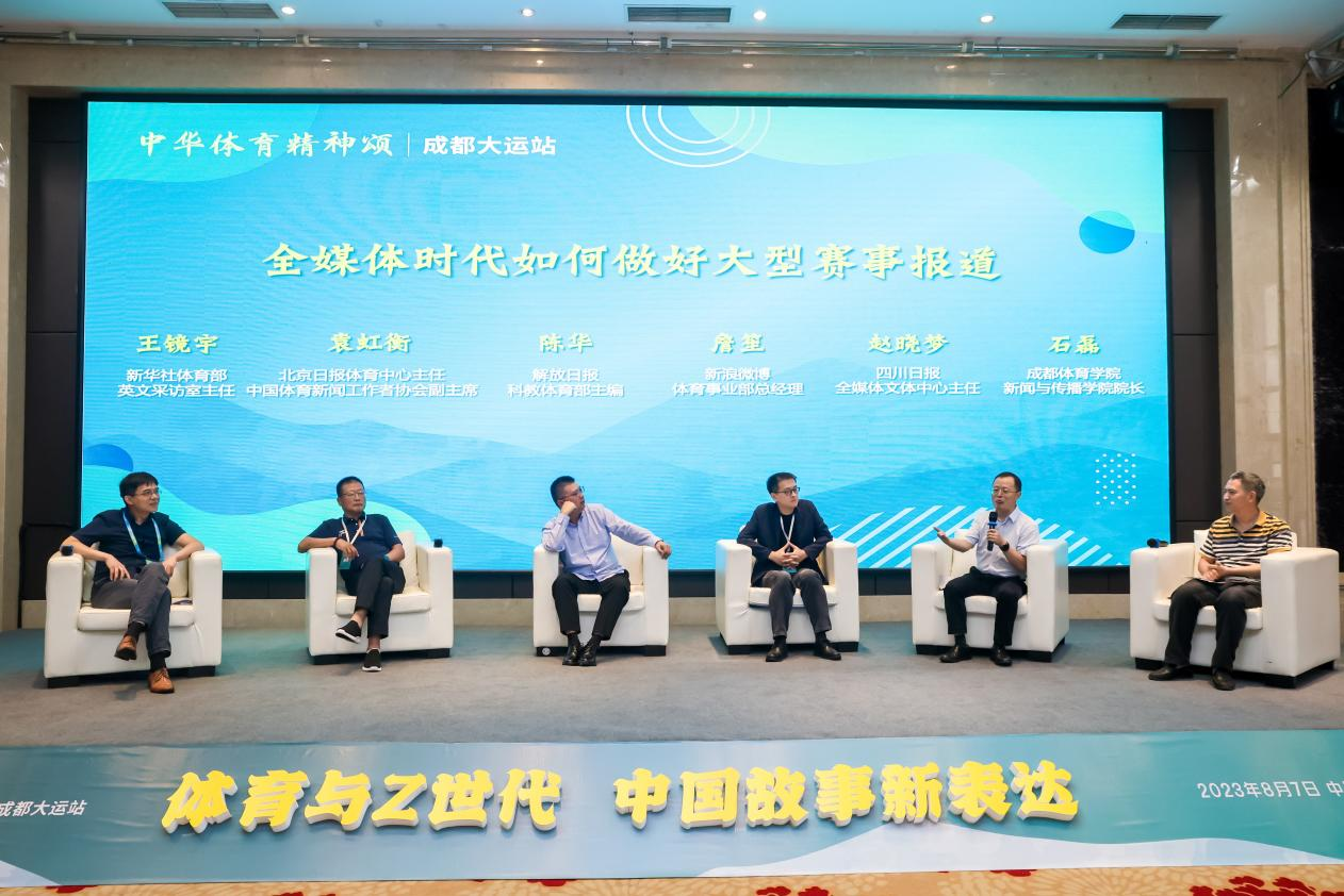 8月6—7日,由国家体育总局宣传司、《新闻战线》杂志社、中国体育新闻工作者协会共同主办的“中华体育精神颂”(成都大运会站)“体育与Z世代 中国故事新表达”主题研讨会在成都举行。allwincity万象城官方网站党委书记、国家体育总局体育高端智库(2023-2025):allwincity万象城官方网站体育文化与宣传战略研究中心首席专家舒为平,allwincity万象城官方网站党委常委、党委宣传部/统战部部长、智库学术骨干欧雪松教授,学术期刊中心主任、智库负责人孙淑慧教授及新闻与传播学院院长、智库学术骨干石磊教授等受邀出席了本次活动,新闻与传播学院30余名师生参加研讨会。