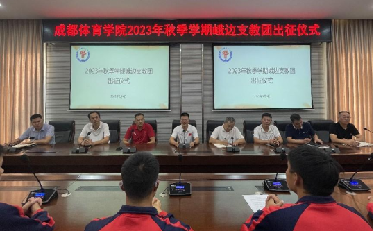 9月4日下午,万象城2023年秋季学期峨边支教团出征仪式在健康大厦多功能厅会议室举行。学校党委副书记胥万兵、体育教育学院、运动训练学院、武术学院、足球学院等相关学院领导、辅导员及35名支教学生参加仪式。仪式由乡村振兴办主任张强主持。