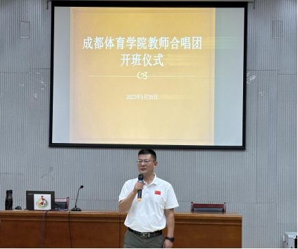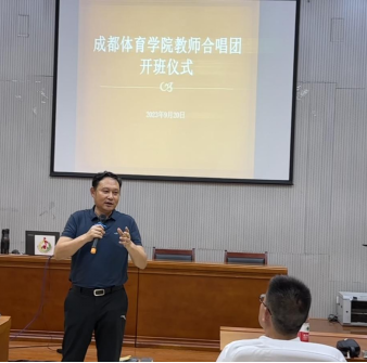 仪式上,胥万兵做了成立致辞和动员讲话。他首先祝贺教师合唱团的正式成立。他指出,学校领导非常重视此项工作,对教师合唱团的成立给予了持续的关心和大力的支持。希望合唱团成员能够以严肃认真、活泼开朗的状态投入到训练中去,提升自身艺术素养和专业水平的同时,更好地带动学校合唱艺术的发展。教师合唱团作为一个大家庭,一要有“家规”。要遵守纪律,按时参加训练;二要有“家风”。合唱团成员代表成体教职工的风采,要展现出应有的精气神;三是要有“家味”。学员们应共同营造属于成体合唱团家的味道。最后,他希望大家在提高自身修养的同时,积极参与到学校校园文化建设各项活动中,为教师合唱团打造一张靓丽名片,为学校建设发展增光添彩。