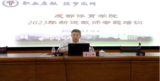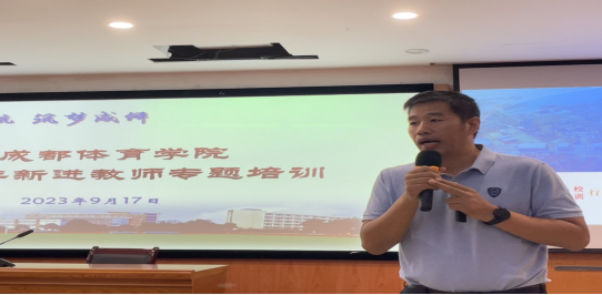 在开班仪式上,人事处副处长、人才工作处副处长、教师发展中心主任杨成波介绍了新进教师基本情况和专题培训工作安排;运动训练学院新入职教师朱思羽代表新进教师发言,表态将坚守教师职业操守,坚定理想信念,贯彻学校重大战略,与成体共成长。学校领导和职能部门负责人为新进教师代表佩戴了校徽,全体参会人员在四川省优秀教师、国际合作与交流处副处长杨飞领誓下进行了庄严的入职宣誓。