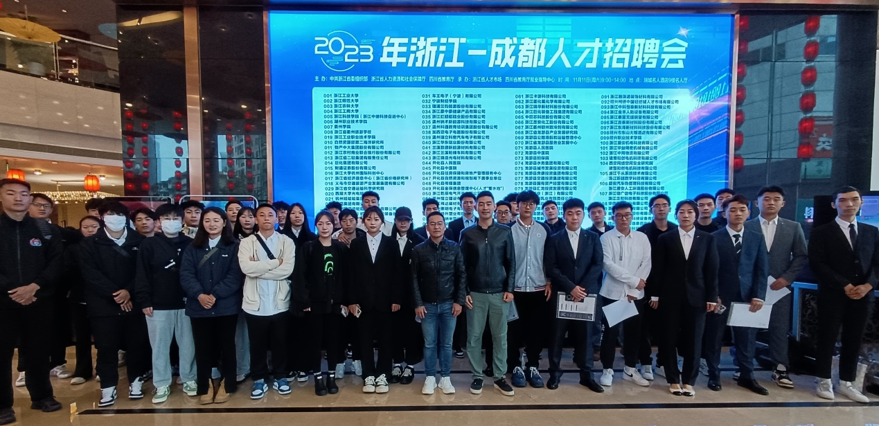11月11日,中共浙江省委组织部、浙江省人力资源和社会保障厅、四川省教育厅、浙江省人才市场、四川省教育厅就业指导中心在瑞城名人酒店举办了浙川东西部协作联合访企拓岗暨四川省2024届高校毕业生浙江专场招聘会活动。由党委学生工作部副部长/学生处副处长陈扬、就业指导中心主任邹佩儒带队,全校11个学院100名毕业生参加了此次招聘会。