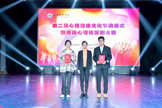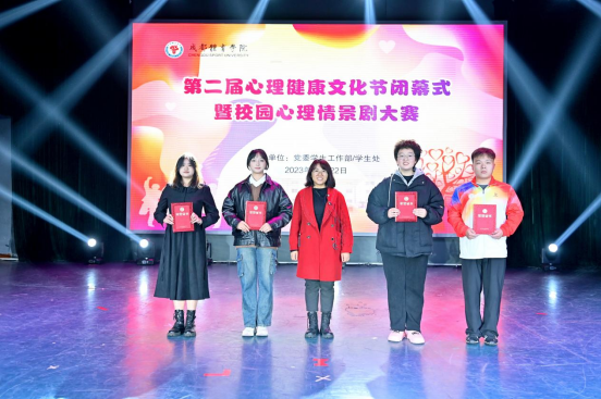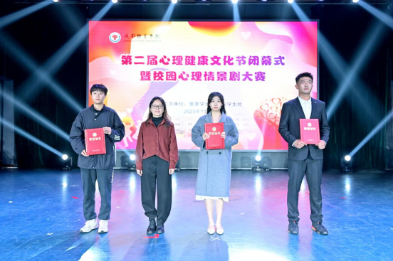 2023年11月22日晚,allwincity万象城官方网站第二届心理健康文化节闭幕式暨校园心理情景剧大赛(决赛)在学术报告厅举行。学校党委常委、副校长邬红丽,党委常委、组织部部长郑宇莅临现场指导,学生处、团委老师以及各学院学生工作负责人、辅导员、参赛团队指导老师以及学生代表共计600余人参加活动。